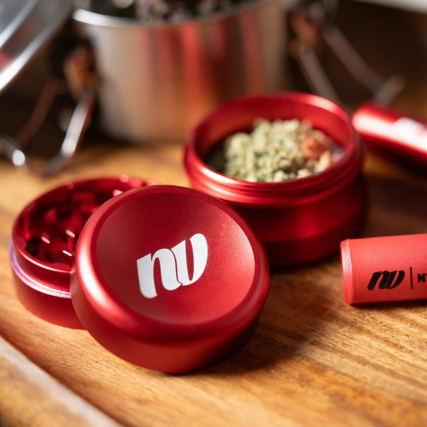 Der NV Diamond Grinder aus eloxiertem Flugzeugaluminium bietet maximale Schärfe, reibungsfreies Mahlen und ein fluffiges Ergebnis ohne Kraftaufwand.