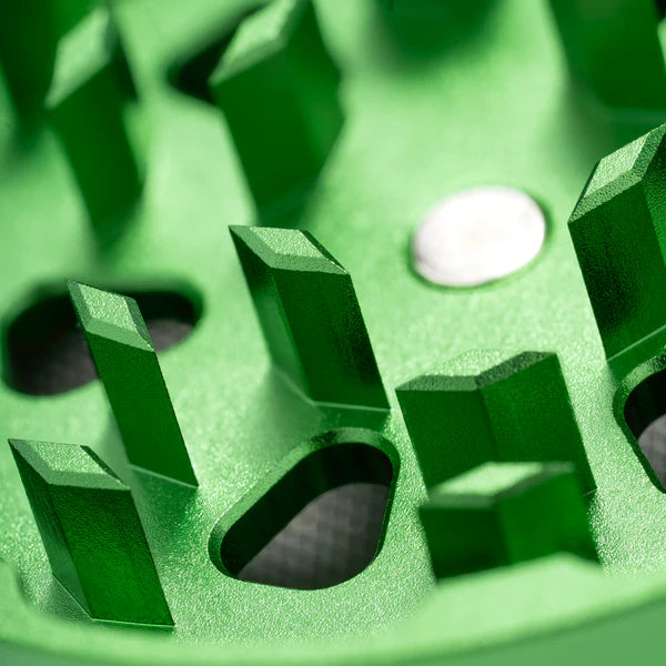 Reibungsarme Rotation, starker Magnetverschluss & Edelstahl-Pollensieb für maximale Effizienz und Ausbeute.