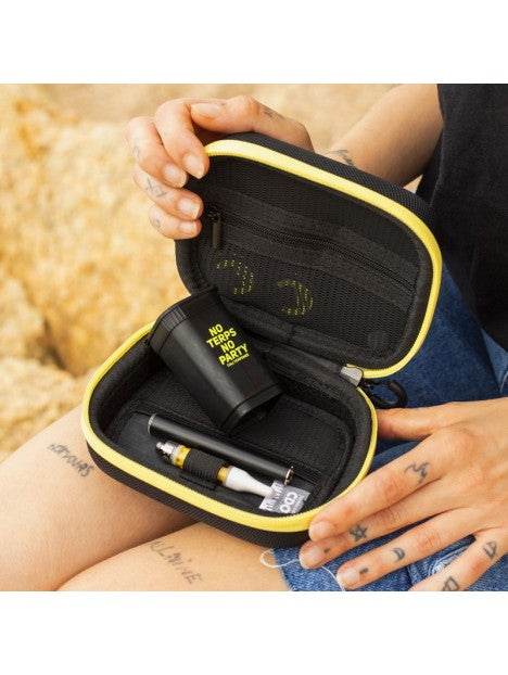 Das OZ.eta × Cali Terpenes Hartschalenetui in limitierter Auflage ist die perfekte Lösung zur sicheren, geruchsreduzierten Aufbewahrung von Zubehör und Terpenen. Ausgestattet mit zwei Aktivkohlefiltern und einem luftdichten Sicherheitsreißverschluss werden unerwünschte Gerüche zuverlässig eingeschlossen.